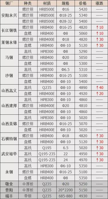 上調(diào)5家,占比33.3%,調(diào)價(jià)幅度10-40元/噸;