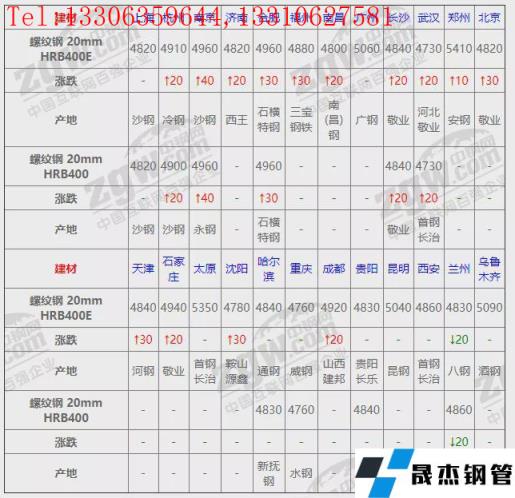 全國10個主要市場螺紋鋼 20mm HRB400平均價格4850元/噸,較上個交易日上調14元/噸。