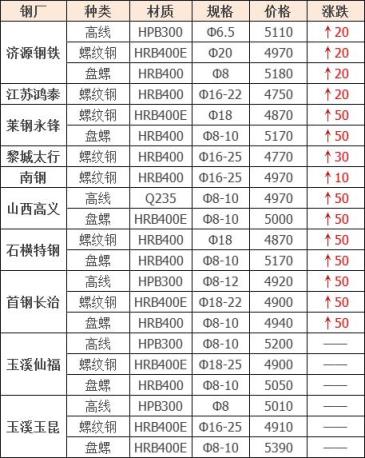 3月4日鎮江鴻泰廢精密管價格格漲30元:新鋼板料3430工槽鋼3380鋼筋頭3380模具鋼3380料頭、沖子3380鋼筋壓塊3330馬蹄鐵3330冷軋、熱軋、沖皮、矽鋼片3330重廢一3330鋼筋毛料3280精爐料3220破碎料3070-3190剪切料3080鋼刨花2950-3000數控刨花2900-2950普通刨花2840-2870鋼絲繩2820輕鋼龍骨、車架子2820,不含稅